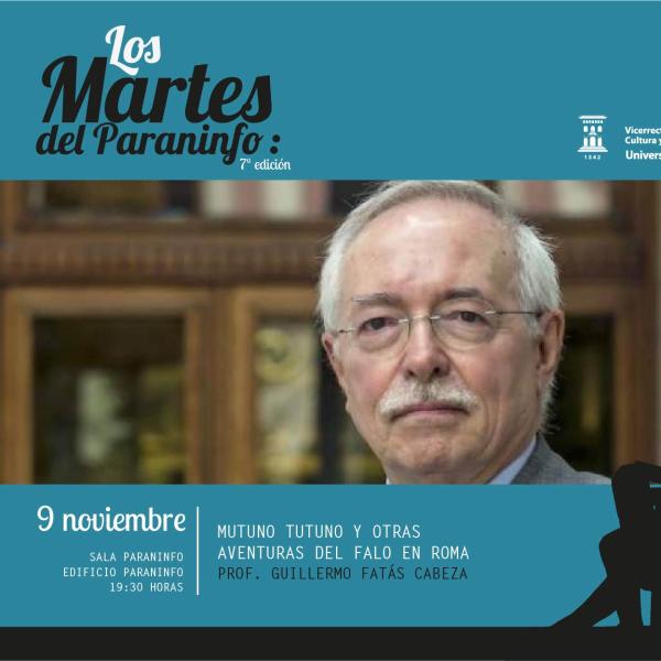 La conferencia titulada Mutuno Tutuno y otras aventuras del falo en Roma será impartida por el profesor emérito Guillermo Fatás Cabeza, el día 9 de noviembre a las 19:30 horas en el Paraninfo de la Universidad de Zaragoza.