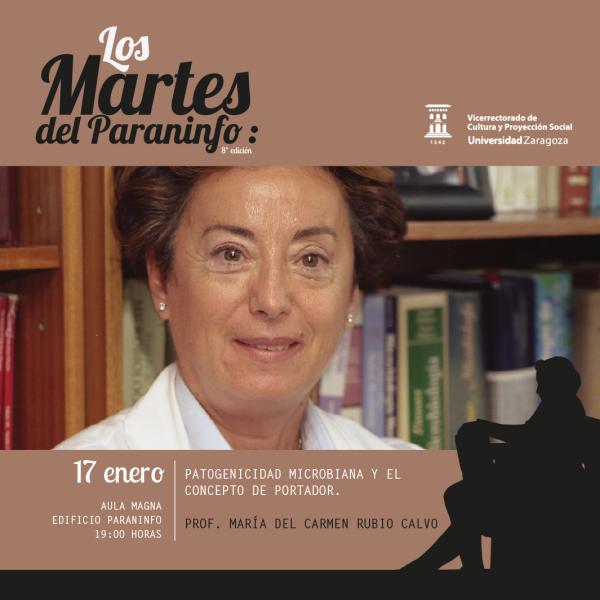 La conferencia titulada Patogenicidad microbiana y el concepto de portador, será impartida por la profesora emérita María del Carmen Rubio Calvo el día 17 de enero a las 19:00 horas en el Aula Magna del Paraninfo.