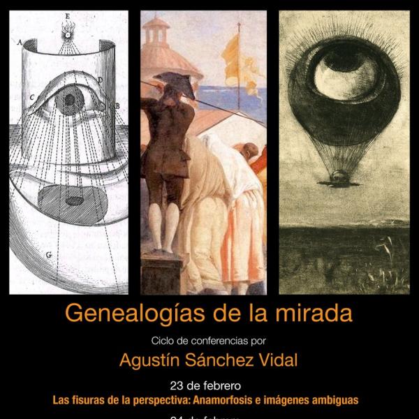 • Primera conferencia (23 de febrero), dedicada a las Fisuras de la Perspectiva: anamorfosis e imágenes ambiguas, en la que se trazará un recorrido por la historia de las experiencias, investigaciones y sugerencias propiciadas por la imagen anamórfica. Un procedimiento que explotaba los márgenes de la perspectiva canónica para colar de rondón imágenes secretas que a menudo sirvieron como propaganda subversiva o para difundir imágenes poco respetables, como las eróticas. Y ello desde las primeras especulaciones científicas trazadas en el clasicismo griego, pasando por las invocaciones literarias y artísticas del Renacimiento o el Barroco, hasta llegar a las formulaciones más estrictamente contemporáneas, cultas o populares. Hoy las anamorfosis inundan nuestras plazas, explorando los fenómenos de la percepción desde ámbitos tan variados como la arquitectura, el cine o la publicidad.