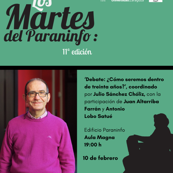 El debate ¿Cómo seremos dentro de 30 años? coordinado por el profesor emérito Julio Sánchez Chóliz y en el que intervendrán los profesores Juan Altarriba Farrán y Antonio Lobo Satué tendrá lugar el 10 de febrero de 2026 a las 19:00h en el Aula Magna del Paraninfo.