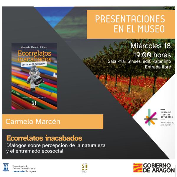 Este miércoles 18 de diciembre a las 19:00 horas os invitamos a la última actividad de “Presentaciones en el Museo” de 2024. Carmelo Marcén, investigador ecosocial, colaborador del Departamento de Geografía en UNIZAR y de la Fundación Alternativas, nos presenta su último libro “Ecorrelatos inacabados. Sin fecha de caducidad”.