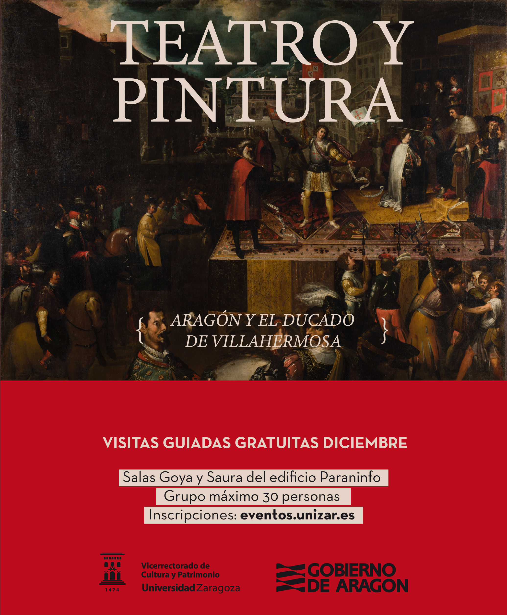 TEATRO Y PINTURA. ARAGÓN Y EL DUCADO DE VILLAHERMOSA, instalada en las salas Goya y Saura del Edificio Paraninfo.