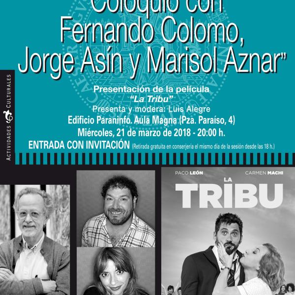 Fernando Colomo, Marisol Aznar y Jorge Asín, director y actoresde La tribu, acudirán el miércoles 21 de marzo a Zaragoza para participar en la sesión 168 de La buena estrella, el ciclo de coloquios organizado por el Vicerrectorado de Cultura y Proyección Social de la Universidad de Zaragoza.